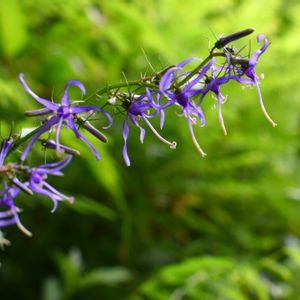 シデシャジン(四手沙参) キキョウ科 シデシャジン属 キキョウの仲間ですが💜花冠は深く5裂しその反り返った花冠が 細長い花びらのようになっています💜 花柱は雄しべの間から長く突き出し柱頭は3裂します 名前の由来は 神官が持つ玉串につけた紙を四手(しで)と言い 花冠が細かく裂けていることから 又 根が「ツリガネニンジン(沙参)」に似ていることから とか❣️ 群馬県渋川市赤城町 赤城自然園に咲いていました🤳
