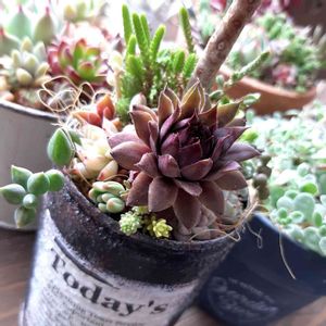 6月に延期されたMarcheに出品する寄せ植え達💕 まだ、日にちは未定だけど… 木立ちの子はスノージェイドさん 足元の子が可愛い💖 隣のリメ缶の子はバイオレットクイーンさん 少しでも紅葉残ってるといいなぁ゜*。(*´Д`)。*°