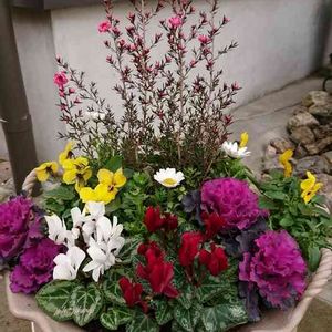 寄せ植え😄* * ☆ギョリュウバイ☆ノースポール☆ビオラ☆ガーデンシクラメン🌿