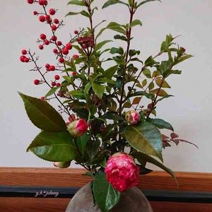 お正月に、庭の花を🌿** * ガマズミ☆南天☆神楽椿🌼