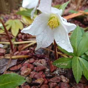 ☆クリスマスローズ🌿** * 地植えして11年目🌼今年も咲いてくれましたけど、今年は三本だけ😅** * 今朝の雨上がり📸**