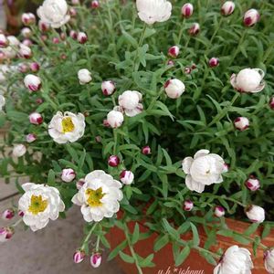 ラナンキュラス🌿花かんざし🌼隠れてますが水仙の芽が出て五センチぐらい🌿の寄せ植え🤗*** * ラナンキュラス🌿が高いのでバランス悪いですが🌿