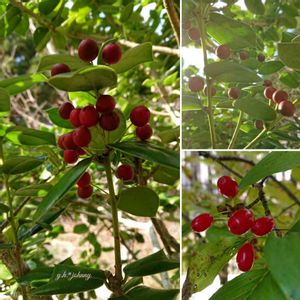 おはよう☀️ございます🍁* * ☆クリスマスホーリ🌲とサンシュユ🌿の実🌿** * クリスマスホーリ🌲剪定しすぎて昨年は少し長いめにカットしてもらったら実が赤くなって来ました🌿🌿🤗* * 鳥さんに食べられずクリスマス頃まで実がありますように🤗🌿