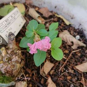 ☆百日紅🌿🌿の種が飛んで薔薇の鉢から🤗*** 花まで咲いてる🌱🌺** 違う鉢に入れてあげようね🌼🌿💕