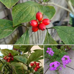☆花水木🌿バーベナ🌼🌿* * 花水木の実が赤くなりました🌿🤗** * 台風🍃🌀☔被害が最小限で過ぎ去るように*** * 皆さまも気をつけて下さい。🍃🌀☔* *