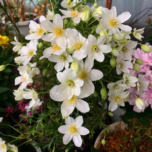 クレマチス カートマニー・ジョー(Clematis)の花🌼 カートマニー・ジョーは、ニュージーランドで生まれた交配種です。🌸このクレマチスは、あまり大きくならず、花も小柄です。しかし、花数は多く、真っ白な花を1株に100輪近く咲かせ、花がたくさん付く様子は、まるで白いブーケのようで、とっても素敵な花です。🌺白いブーケ💐のような幸せを運ぶ素敵なクレマチスをお楽しみください。🌸🪴🌼