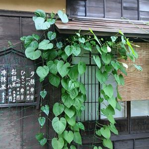 今朝の兼六園➂ 瓢池の畔の三芳庵には毎年夕顔(夕顔の実は瓢箪)を育てています。 エンジュの花も咲いています。