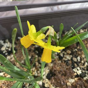 昨年いただいた水仙が咲いてくれました。ムスカリは無人のお花の販売所にて購入、少しづつ花が開いてきてくれています。