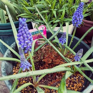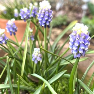 🍀🌻🪴💐🌹🌻🍀 🍀💜🤍ムスカリ🤍💜🍀 💐ムスカリの花言葉は(寛大な愛) (明る い未来) (夢にかける思い) (通じ合う 心)などです 💐ムスカリは、ユリ科(またはキジカク シ科)ムスカリ属の多年草植物です 💐ムスカリは4~5月に開花を迎えて、 花もちは10日前後で、青や紫のほ か、白やピンクなどかわいらしい花 が咲きます 💐草丈は15~20cmと低く誰でも育てや すいことから、ガーデニング用とし て、とても人気の高い植物です 💐ブドウの房を連想させる特徴にちな んで(ブドウヒヤシンス )や(グレープ ヒヤシンス)といった別名があります 🍀🌻🪴💐🌹🌻🍀