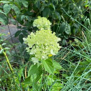 2年目のPWのノリウツギ・リトルライム。 中心の2つに遅れて、周りの花も開いてきました✨ 実際は背の高い2つが大きいです😊