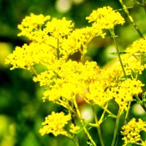 9月22日 今日のお花『オミナエシ』です。 【オミナエシ(女郎花)】 日本・東アジア原産、オミナエシ科多年草 秋の七草の一つで、日本では万葉の昔から親しまれている。 日当たりの良い山野の草地や林縁に自生している。 茎の上部で分枝して、花茎の先端に黄色い小花を平らな散房状に多数咲かせる。 1個ずつの花は、直径3 - 4mm ほどの合弁花で]、花冠は5裂し、下は短い筒となる。 花の中に、雄しべが4個、雌しべは1個ある。 草丈:60~100cm、 開花期:8月~10月 女郎花花色:黄 広島市植物公園にて