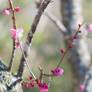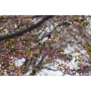 カワヅザクラ(河津桜) バラ科サクラ属の落葉高木でカンヒザクラとオオシマザクラが自然に交配してできたもの、あるいはカンザクラの一品種とされる(諸説あり)。昭和30年ころ静岡県河津町の飯田邸に移植されたことをきっかけに広まり、昭和43年に河津町の桜という意味合いで「カワヅザクラ」と命名された。 花の色がソメイヨシノなどより濃いことや花期(1か月程度)が比較的長いこと、1月下旬から咲き始める早咲きである。