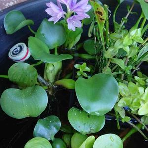 おはよーございます🎵 朝投稿はメズラシ 気持ちいい気温18度です 徐々にまた30度以上になるんだろう ビオトープ 🌿🎐 ホテイアオイに花が…初めてなのでパチリとアップ🤳😄