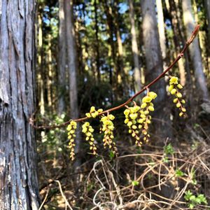なんか、スギの木から、キブシの花枝が出てるみたい😊😍