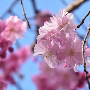 枝垂れ桜は乙女ピンク🌸 今週末は満開かな?