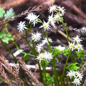 薄暗い林の小道の脇に、突然に、セリバオウレンが一面に出現‼️😍 荒れた林と可憐なセリバオウレン、無茶苦茶アンバランスですよ〜😓