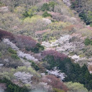 西の吉野 東の桜川と言われる桜の名所。 桜川の山桜。 山の斜面、一面春色☺️