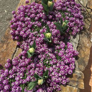 ワクワクする花壇🌷 チューリップが覗いてる姿にニンマリ☺︎