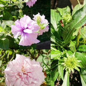 右:エキナセアの蕾出てきました‼️ヤッタァ~✨😄⤴️✨ 8月の変な長雨で元気無くなって、もうダメかと思ってました😂 左上:ペチュニア ドレスアップ ラベンダー は次々とポンポン咲いていますが、特に好きな色合いと形のを撮りました🎵 左下:満開な つるバラ レイニーブルーはとても柔らかい花びらで、モフモフふわふわで可愛いです💞
