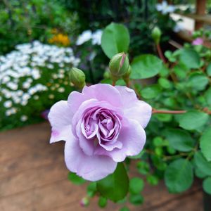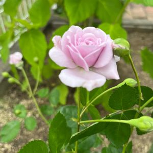 5月5日の 薔薇✨レイニーブルー。 昨年植えてこの場所は 気に入ってくれるかな?って… 昨年は少しずつ咲いてましたが、 今年は長い時間徐々に咲いて 咲き始めも退色した淡い薄紫まで 楽しませてくれました🍀 昨夜はレイニーブルー♪~も 聞きましたよ😁