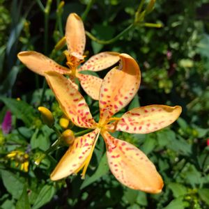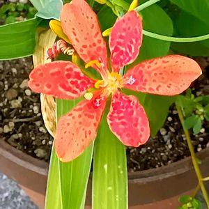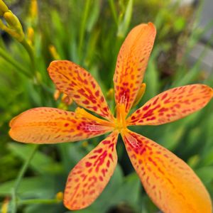 (๑ˊ͈ ꇴ ˋ͈)ꕤおはよーꕤ ヒオウギ咲きました❣ 厄除け✾魔除け 疫病退散を祈願する祇園祭りに欠かせない植物だってさ 花言葉☆誠意 個性美 蕾の時は黄色でした 暑さに強く 虫もつかない 今日も猛烈に熱くなります 熱中症厳重注意してくださいね ꕀꕤ*。゚ ∧,,,∧ ᖗ ( ˶• ˕ •˶ )っ ❄ ( ̄∪ ̄ ̄ ̄) /ᐠ⑅⸝⸝⑅ᐟ\ (˶◝ ·̫ ◜˶) ᭄(ゔ♡ど)❄💠💠💠🍀