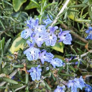 今日のお花、ローズマリー❣️ 陽のあたる場所はお花が沢山咲いたけれど、そろそろお終いかな❓ 新芽はイキイキと延びてます✨ ローズマリーはいい香り💕