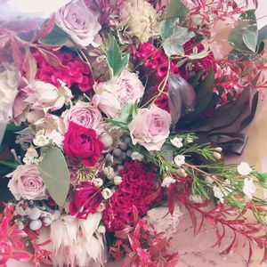 紫苑の様式。 初めて紫苑を使いました。 鶏頭がいい感じにおさまったので自分でも納得の出来上がり😁 小菊が咲いてたらいい感じになったのかな。