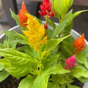 ポップな鶏頭を寄せ植えにしてみました。 もう少し派手になってくれると嬉しいですよ。😊