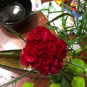 大きな鶏頭にアクセントでグリーンの線を合わせてみました。