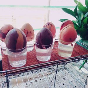 アボカド種からの発芽、その後 水耕栽培のまんま外におります🌱 液体肥料やってません 日当たり良好な場所 水を足しているだけです きっと日中の暑さではお湯になってるはず 強いですね❗️👏🏻