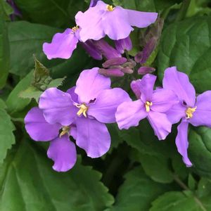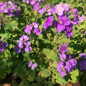 おはようございます。◕‿◕。 💠ハナダイコン💠紫花菜💜 薄紫色がきれいです✨ 自然に自生で咲いてます🎵 去年は満開の時期でしたが今年は日陰の為か、まだチラホラ🌼💜💙