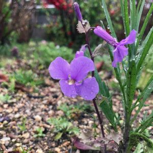 もう咲いていました。 ムラサキハナナの蕾 和名 オオアライセイトウ 別名、流通名:ハナダイコン 青みがかった紫色の花が咲きます。