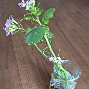 狭い庭に、ダイコンバナがたくさん増えてる😊 ダイコンバナって、別名「オオアラセイトウ(大紫羅欄花)、「ショカッサイ(諸葛菜)」とか「ハナダイコン(花大根)」とも言うんですね。