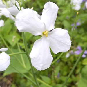 春の白花さんたち⑱ ショカツサイ、とか ムラサキハナナ、 オオアラセイトウ ハナダイコン など、色んな名前があるみたいです。 みなさんは何て呼ばれていますか? そのシロバナさんです🤍