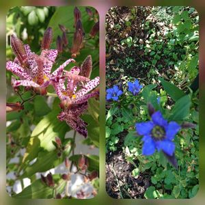台風一過、庭のホトトギスとリンドウが咲いてます。