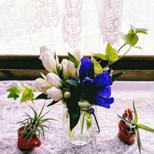 今日のお花「リンドウ」 お庭に咲いていたお花で…☀️ 白andブルー系色でアレンジしてみました…🌿
