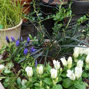 今、リンドウとノコンギクを寄せ植えしました😊 シンプルですが両方とも小さく可愛らしい お花です🌸