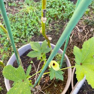 2022ー11ー19(土) オクラに花が🌼開きました 未だ気温か足らないのか開ききっていませんが🤭