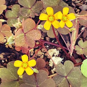 2022ー 11ー4(金)🟦☀️🟦晴れ 未だ未だ💪😤頑張る オクラのプランターの中 カタバミ🌼の花? とっても健気に葉っぱの色も変わり咲いています。