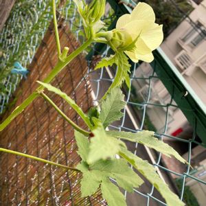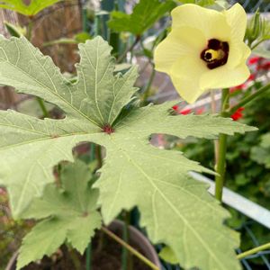 2022ー8ー20(土)晴れ☀️ 今朝🌼オクラの花が ひとつ咲きました。