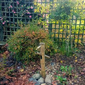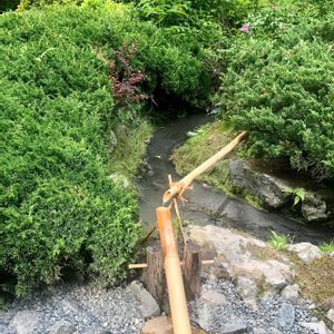 皆さんこんにちは👋😃今回は表庭のししおどしの支柱の高さを少し上げ筒を新しくして叩き石の位置を調整したら今までに無いくらいのいい天然竹の音がするようになりました🎵🎶動画は投稿出来ませんがチョロチョロ〰️ーーコンコン🎶🎶🎶🎶って感じで最後まで響き渡るいい音色です😆🎵🎵