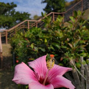 おはようございます😊 今日のお花の在庫写真はないから、ピンクの日で投稿🏷 昨年末の首里城にて🌺