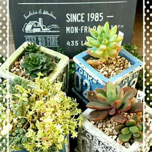 セリアで可愛い鉢見つけたので寄せ植え〜 可愛いく撮りたいのに機種が悪いのか私の腕が悪いのか上手く撮れない😩腕が未熟なのに決まってるけど…^^;