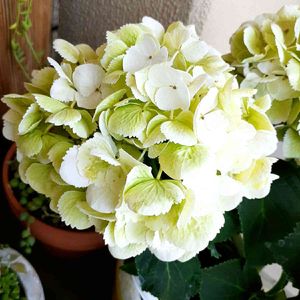 ミニバラ🌹グリーンアイスのお花が綺麗に咲きました。 息子の玄関先にて 調べました。 グリーンアイスは花径4cmのかわいいミニバラです。咲き始めは白い花ですが、1週間かけて徐々に緑色へと変化します。花の寿命が2~3週間と長く、多花性です。四季咲き性で、鉢植え栽培に向いています。戸外の日当たりのよい場所で育ててください。春から秋の間は、一度咲き終わったら切り戻しておくと、またわき芽が伸びて2~3ヶ月後に開花します。 タイプ:耐寒性落葉低木(-25度まで) 樹高:30~40cm 日照:日向向き 栽培方法: 開花中はこのままお楽しみください。一回り大きな鉢に植え替えをされる場合は、5~6号(直径15~18cm)で、土がたくさん入る深めの鉢が適しています。赤玉土6対腐葉土4を混ぜ、発根促進のためにミリオンまたはハイフレッシュを小さじ2杯ほど混ぜて植えつけます。鉢植えの場合、元肥は土に混ぜないでください。 水切れしないように注意し、置き肥として固形肥料を5~6個土の上に置き、月に1回取り替えます。追肥として液肥を規定倍率に薄め、芽の伸長にあわせて、株周りに何回かにわけて行ってください。 3月から11月はうどん粉病やアブラムシなどがよく発生しますので、月1回は薬剤で防除してください。 12月から1月に剪定してください。また、鉢植えの場合は根詰まりしやすいので、年に1回冬の休眠期に鉢から根を抜き、古い土を落として根をほぐし、新しい土に植え替えます。 ♬*゚・*:..。o♬*゚・*:..。o♬*゚・*:..。o♬*゚ 咲き始めは白 しだいにグリーンに変化していきます。 花の時期が長く楽しめます。✌️ 息子が初めて自分で買って 育てています。 素敵なミニバラ🌹だなぁ💕と 感心しています。 今日も素敵な一日をお過ごし下さいね🥰