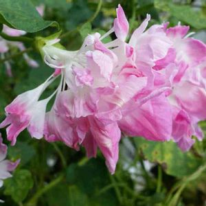 かわいい花を見かけました。これでひとつの花のようです。 見たことないけど、ヒルガオ科?もしかして、八重咲きの朝顔なんてある?でヒットしました🍀 八重咲き朝顔のようです👀