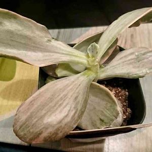 たまーに行くホームセンターで、ちょっと前に入荷されてた名無しのエケベリア。 いつも管理が最悪で…棒が刺さっただけに見える鉢とかもチラホラあるんだけど、少し気になって見ていたこの子がビローンとなってきているのを見て思わずレジへ…😅 初めに見たときに既に形が悪かったんだけど…きちんと管理したらどんな子になるのかなぁ? 皆さんのコメントを見てデコラ錦かな?ってなりました~♪(*´∇`*) ありがとうございます(*´ω`*)