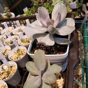 おはようございます⛄ 昨日、近くの園芸店に行き、可愛い~色のエケベリアを連れてきたんです。 ラベルには、エケベリアとしか書いてなくて(´Д`)ハァ… お店の人にエケベリアの何と言う名前ですか?って聞いても、はぁ~と言って首をかしげるだけ‥‥ お家に帰って来て、ググってみてもわかりません(⸝⸝› ‹⸝⸝)💦 教えてもらえますか~お願いします👳🙇💦