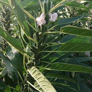ごまの花。 金ごま、黒ごまを育てていますが 花の色は変わらないのですね。