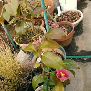 友人は大胆で細やかだ矢張り修行しただけあるかな〜サラリーマンを終え年金生活なのだが昨年の二倍程の芽数で少し早いが葉繕い(葉もみ)をしていた棚の雲龍椿は金魚椿より花色は濃いが両者共に花を見る樹ではないかな〜気になるのは棚の上の松復活の手だてを考えないと又我が家にやって来る事になる