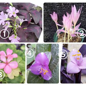 こんにちは☀️ 暑いですね。 今 優しく咲いている ピンク系のお花💗💞です🤗 ①オキザリストリアングラリス ②犬サフラン ③ゼラニューム ④トラデスカンチァシラモンナタ (白雪姫 白絹姫 等々お名前がネ💗) 葉のモフモフが良いわね。 ⑤紫御殿 最低気温 最高気温 月齢13.1(正午)